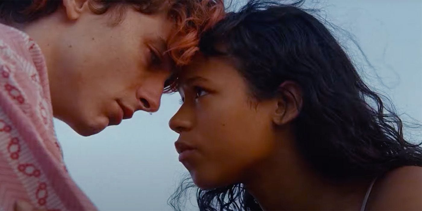 However, the final scene requires a marriage between the blood and the romance. For some, the image of a screaming Chalamet and nibbling Russel, covered in blood, might be the cherry on top of a creepy love affair. Romeo and Juliet but cannibals and poor. But I’d make the argument that it fails in making the final feeding scene feel romantic. Maybe it’s an impossible task. And no, cutting to the two topless doesn’t help. In fact, I think it’s actually a cop out to the goal of the scene.