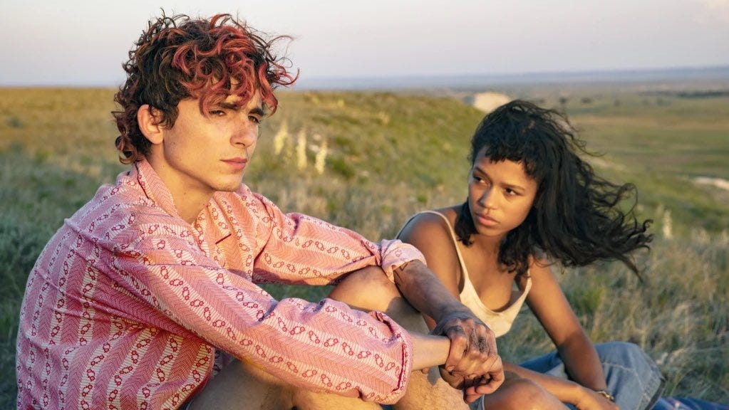 This story follows Maren (Taylor Russel), a high school student who, via some genetic disposition, hungers for human flesh. When her father abandons her following an incident at a sleepover, she begins the journey to find her mother. On her travels she learns there are others like her, and including an obsessive stranger named Sully (Mark Rylance), and a young man dressed like Harry Styles named Lee (Timothée Chalamet). The younger two bond over their shared hunger and traumas, find more like them, and eventually try to live a normal life. When Lee is fatally stabbed, he requests that Maren eat him, “bones and all”. She does.
